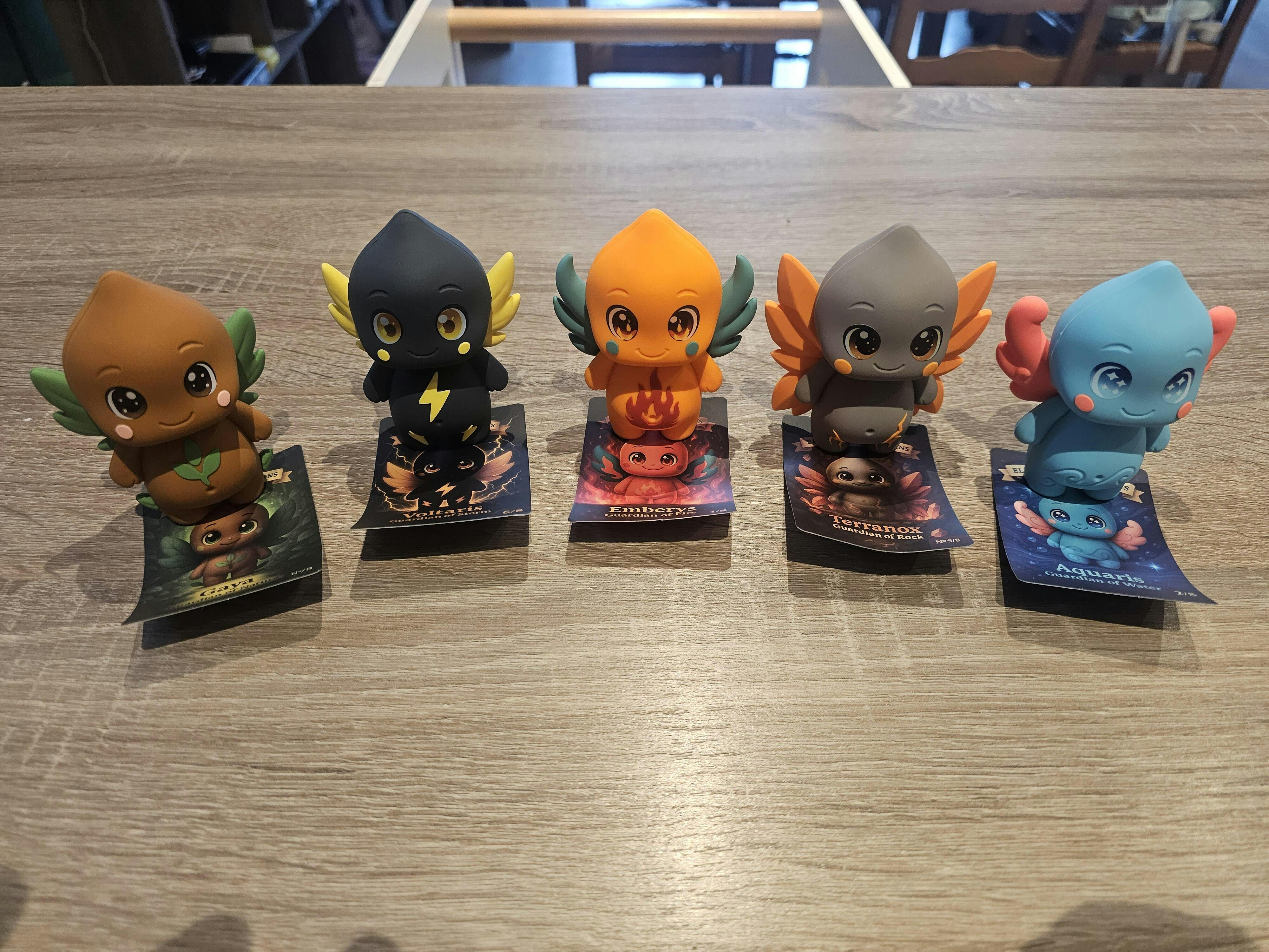 Chaque BlindBox Nokku renferme une figurine surprise de la collection Elemental Guardians — de petites gouttes ailées, protectrices des éléments de la nature.